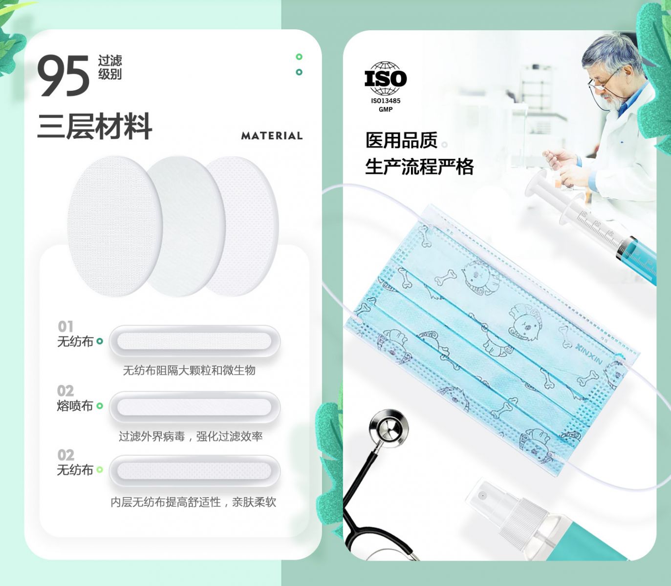 尺寸:14.5x9cm 主要成分:無(wú)紡布+熔噴布 產(chǎn)品款式:彈力耳帶 產(chǎn)品特點(diǎn):過(guò)濾效率≥95%/≥98%